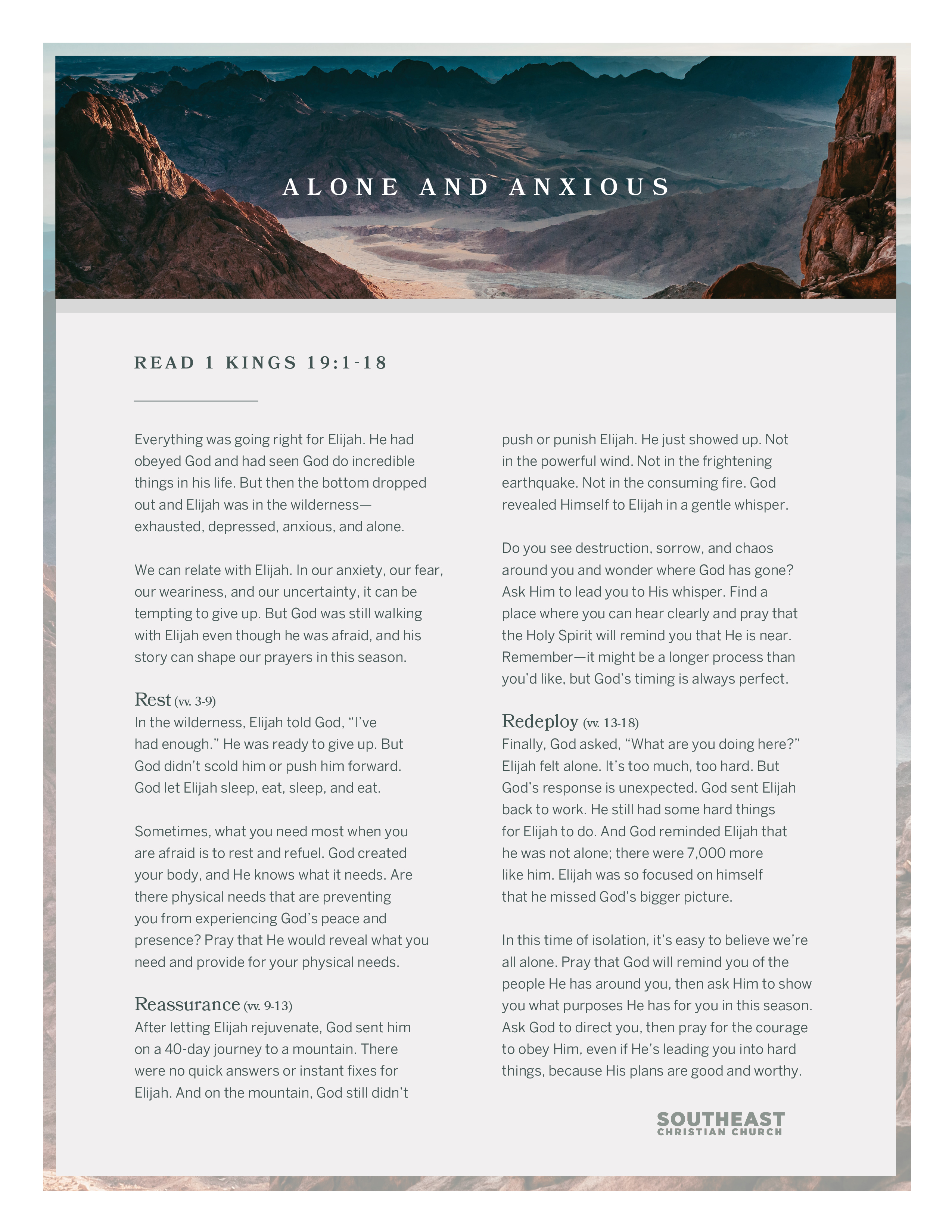Prayer Guide - Alone and Anxious (1 Kings 19)